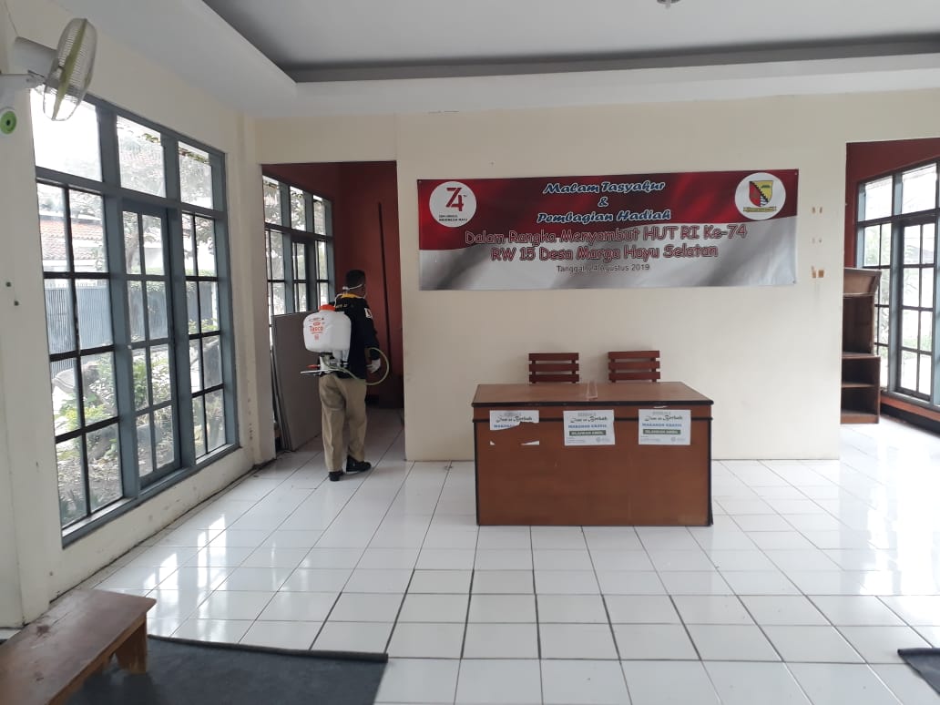 Dalam kegiatan tersebut dilakukan juga penyemprotan desinfektan di beberapa tempat yang biasa terdapat keramaian seperti Balai RW dan tempat Posyandu.