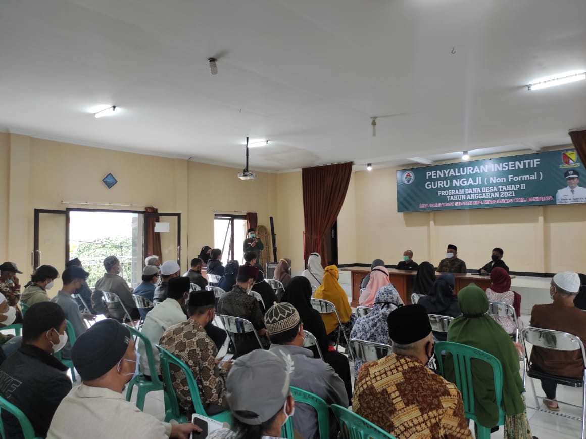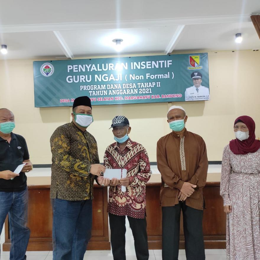 Penyaluran Insentif Guru Ngaji (Non Formal) Program Dana Desa Tahap 2 Tahun Anggaran 2021 Desa Margahayu Selatan dilaksanakan pada hari Sabtu, 25 Desember 2021 di Aula Kantor Desa Margahayu Selatan Kecamatan Margahayu Kabupaten Bandung. Kegiatan ini dihadiri oleh Kepala Desa Margahayu Selatan H. Amin M.Barkah, ST, Ketua BPD Margahayu Selatan Sumarno, Ketua LPMD Margahayu Selatan H. Aam Daryana, SH, Pemerintah Desa Margahayu Selatan dan 85 guru ngaji penerima Insentif se-Desa Margahayu Selatan.