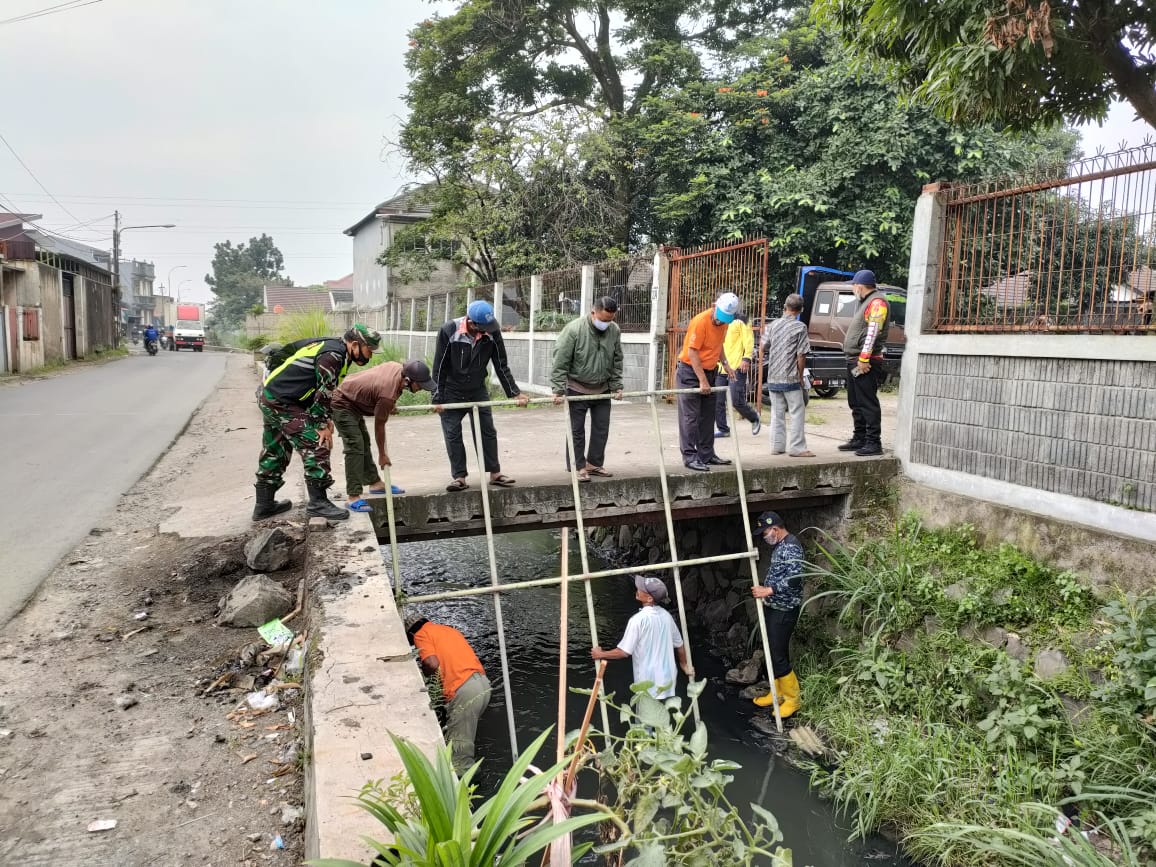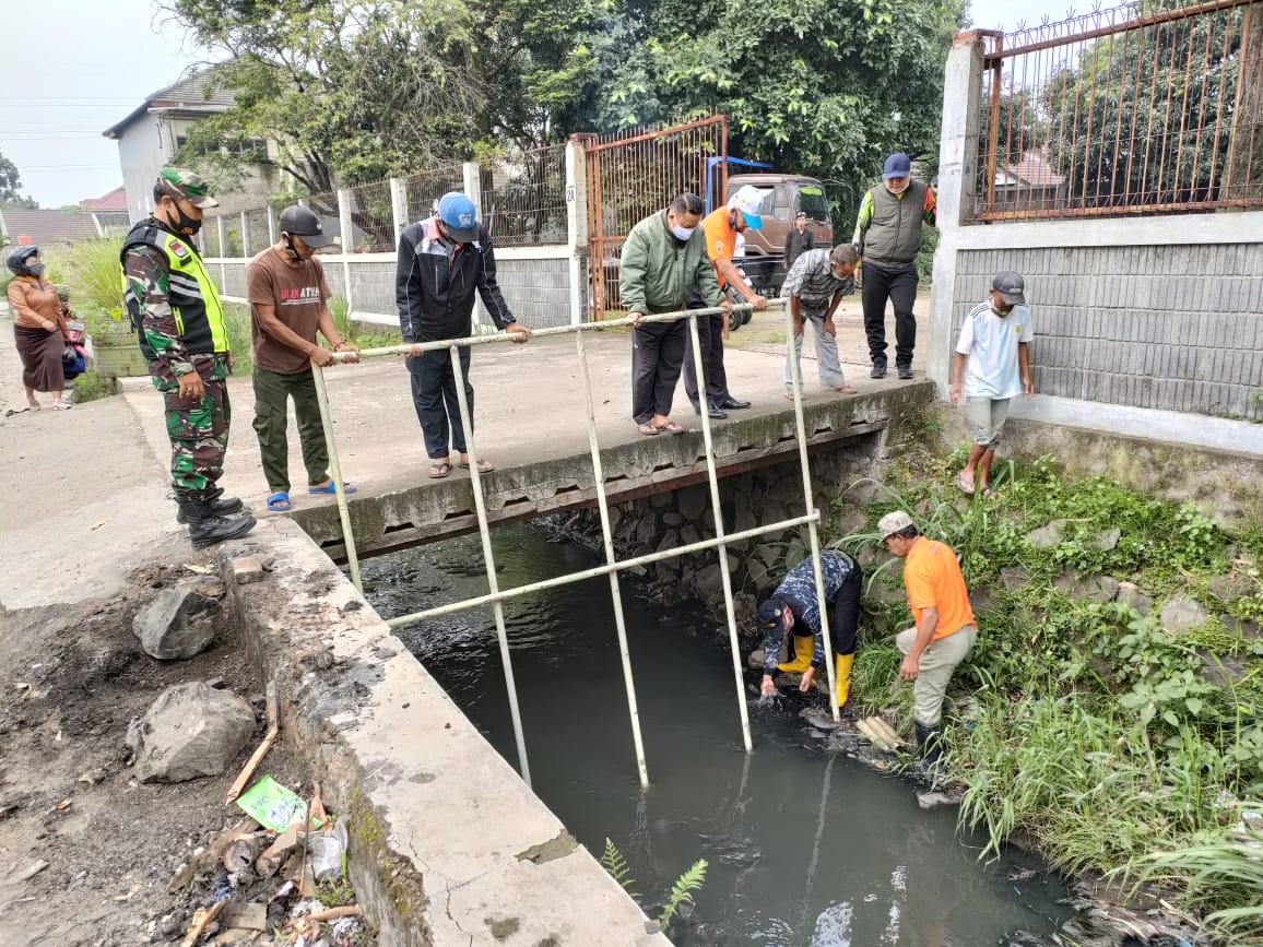 Himbauan Dandim, Danramil dan Sektor 8 untuk memasang jaring penghadang sampah di aliran air selokan Jl. Manglid RT 05 RW 11 Desa Margahayu Selatan dilaksanakan pada hari Sabtu, 13 Februari 2021.