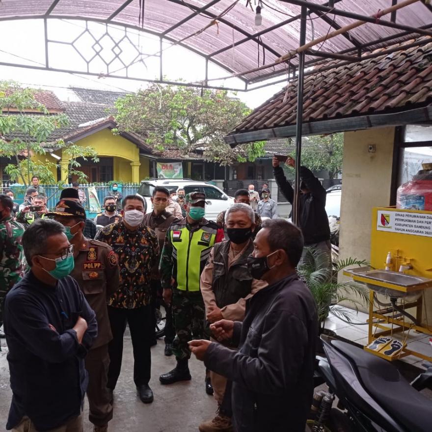 Monitoring kegiatan PPKM skala Mikro Satgas Covid-19 Desa Margahayu Selatan oleh Forkopimda Kabupaten Bandung yang dilaksanakan oleh Plh. Bupati Kabupaten Bandung, Tisna Umaran, unsur Dandim, dan unsur Polres.