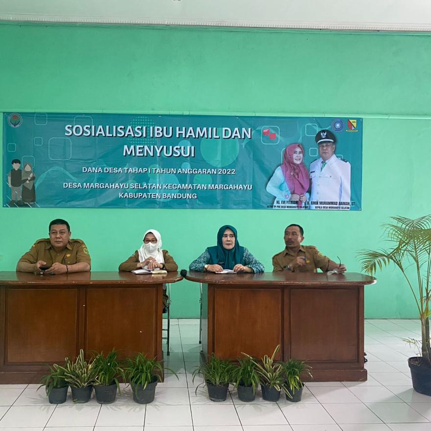 Giat Sosialisasi Ibu Hamil dan Menyusui dilaksanakan pada hari Senin, 29 Agustus 2022 di GOR Desa Margahayu Selatan. Giat Sosialisasi ini bersumber dari Dana Desa Tahap I Tahun Anggaran 2022. Narasumber kegiatan ini adalah Ibu Yai Giyanti, S. Sos, M.Si Kepala UPTD Pembinaan Faskes KB Kecamatan Margahayu dan dr. Yeni dari Puskesmas Margahayu Selatan yang menyampaikan materi mengenai pentingnya Keluarga Berencana dalam Peningkatan Kesehatan Ibu dan Anak. Dalam Giat ini juga dilakukan pemeriksaan oleh Tenaga Kesehatan dari Puskesmas Margahayu Selatan untuk Ibu Hamil dan Menyusui yaitu :