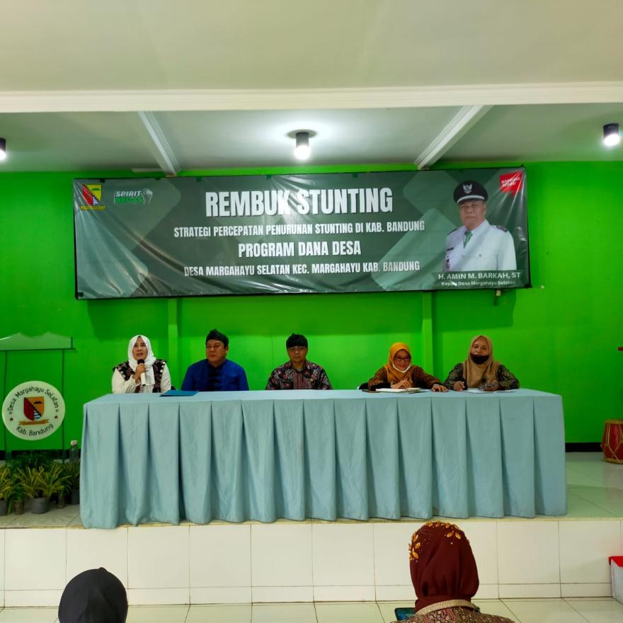 Giat Rembuk Stunting Desa Margahayu Selatan dilaksanakan di Aula Kantor Desa Margahayu Selatan pada hari Kamis, 15 Desember 2022. Giat Rembuk Stunting ini dilakukan dalam upaya percepatan penurunan anak Stunting di wilayah Kabupaten Bandung khususnya di Desa Margahayu Selatan. Giat yang bersumber dari Dana Desa Tahun Anggaran 2022 ini dihadiri oleh unsur Kecamatan Margahayu, Kepala Desa Margahayu Selatan dan perangkat, unsur LPM Desa Margahayu Selatan, unsur BPD Margahayu Selatan, dan unsur Kader dari setiap RW di Desa Margahayu Selatan yang memegang peran penting dalam setiap pencatatan tumbuh kembang anak yang dilakukan di Posyandu setiap bulannya. Semoga dengan upaya adanya giat Rembuk Stunting ini setiap unsur yang terlibat dalam giat ini dapat membantu menurunkan angka stunting di Wilayah Kabupaten Bandung.